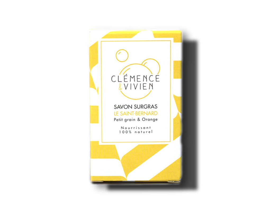 La marque de cosmétiques naturels Clémence & Vivien vous propose le savon à froid - le Saint-Bernard. Un savon spécialement conçu pour les peaux très sèches., qui redonne douceur et élasticité à votre peau. Composé d'huile de ricin et d'huiles essentielles au propriétés cicatrisantes, le savon Saint-Bernard apporte une grande hydratation à votre peau.